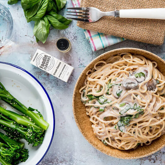 Hongos seleccionados infusionan una salsa que envuelve la pasta en una experiencia reconfortante.