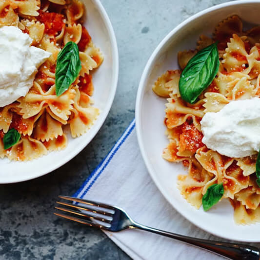 Salsa verde vibrante que se funde con la pasta fresca. Ligera, aromática y reconfortante.